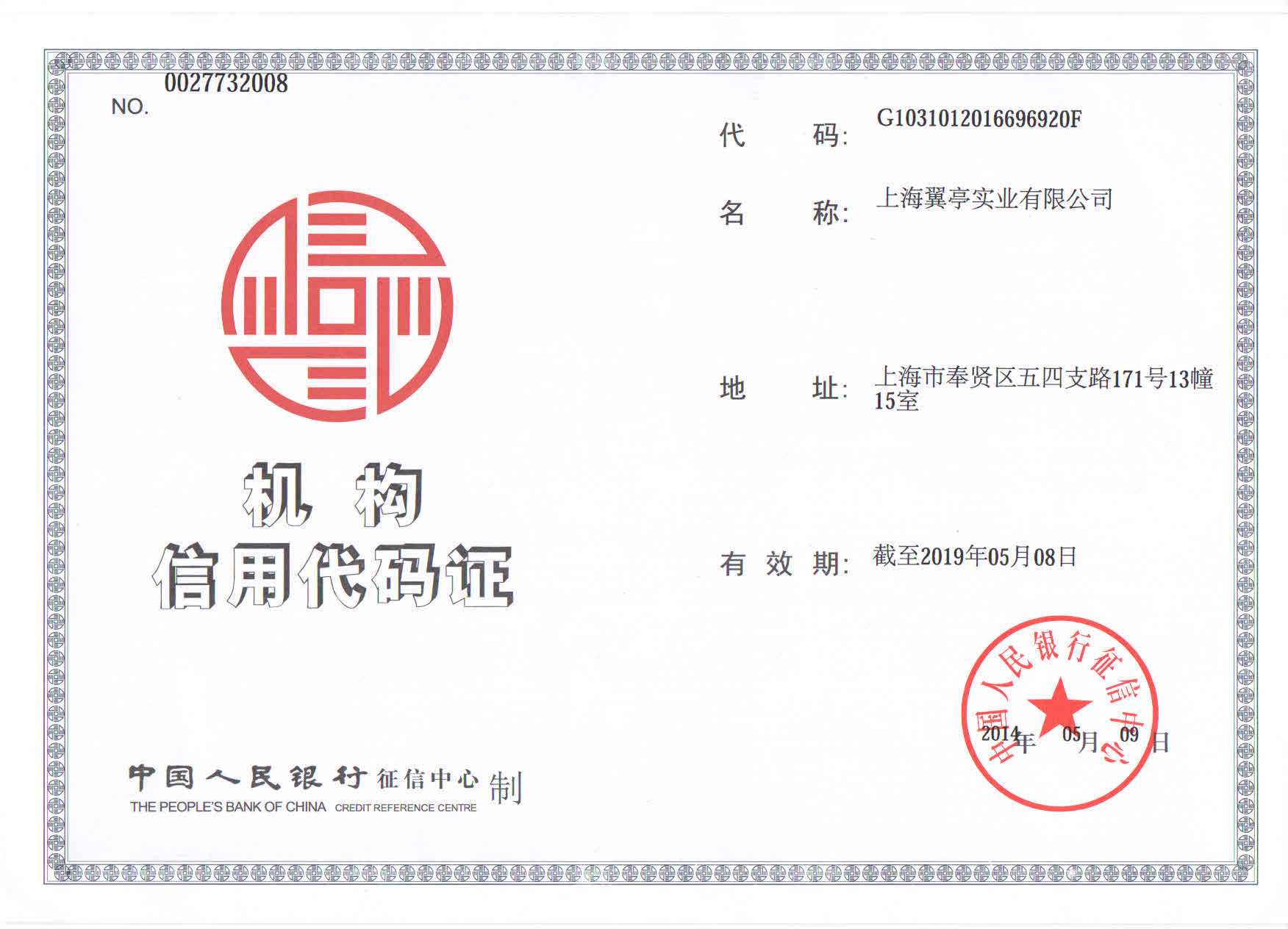 翼亭上海崗?fù)そM織機(jī)構(gòu)代碼證